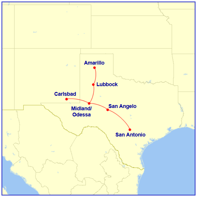 Permian Airways June 1, 1980 Map generated by the Great Circle Mapper – copyright © Karl L. Swartz. PREVIOUS PAGE MAIN PAGE Share this: Click to share on X (Opens in new window) X Click to share on Facebook (Opens in new window) Facebook Like Loading...
