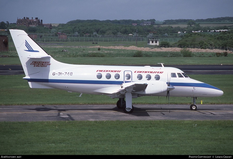 Piedmont Commuter System British Aerospace BAe-3102 Jetstream 31 is show at Glasgow Prestwick Airport wearing the temporary British registration G-31-748 prior to delivery to the airline.