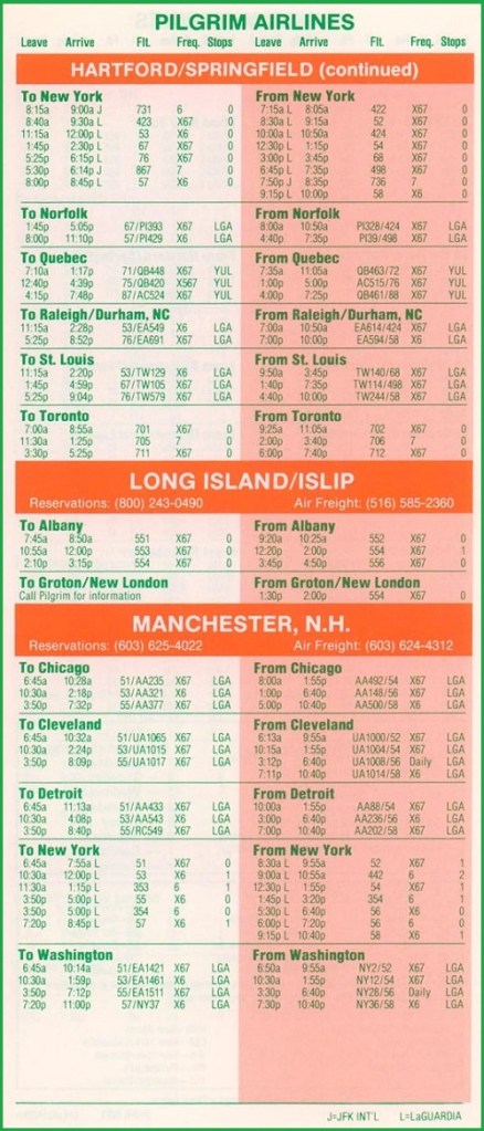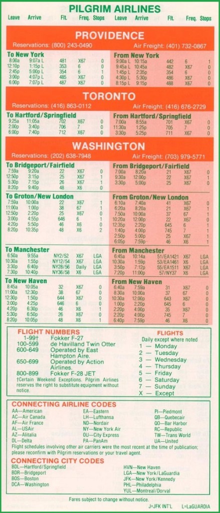 Pilgrim Airlines April 28, 1985 System Timetable PREVIOUS PAGE MAIN PAGE Share this: Click to share on X (Opens in new window) X Click to share on Facebook (Opens in new window) Facebook Like Loading...