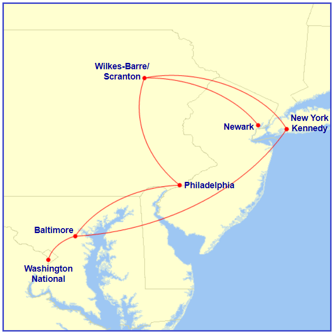 Pocono Airlines September 6, 1984 Map generated by the Great Circle Mapper – copyright © Karl L. Swartz. PREVIOUS PAGE MAIN PAGE Share this: Share on X (Opens in new window) X Share on Facebook (Opens in new window) Facebook Like Loading...