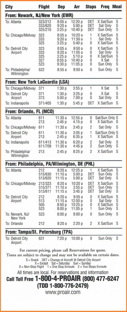 Pro Air March 1, 1999 System Timetable PREVIOUS PAGE MAIN PAGE Share this: Click to share on X (Opens in new window) X Click to share on Facebook (Opens in new window) Facebook Like Loading...