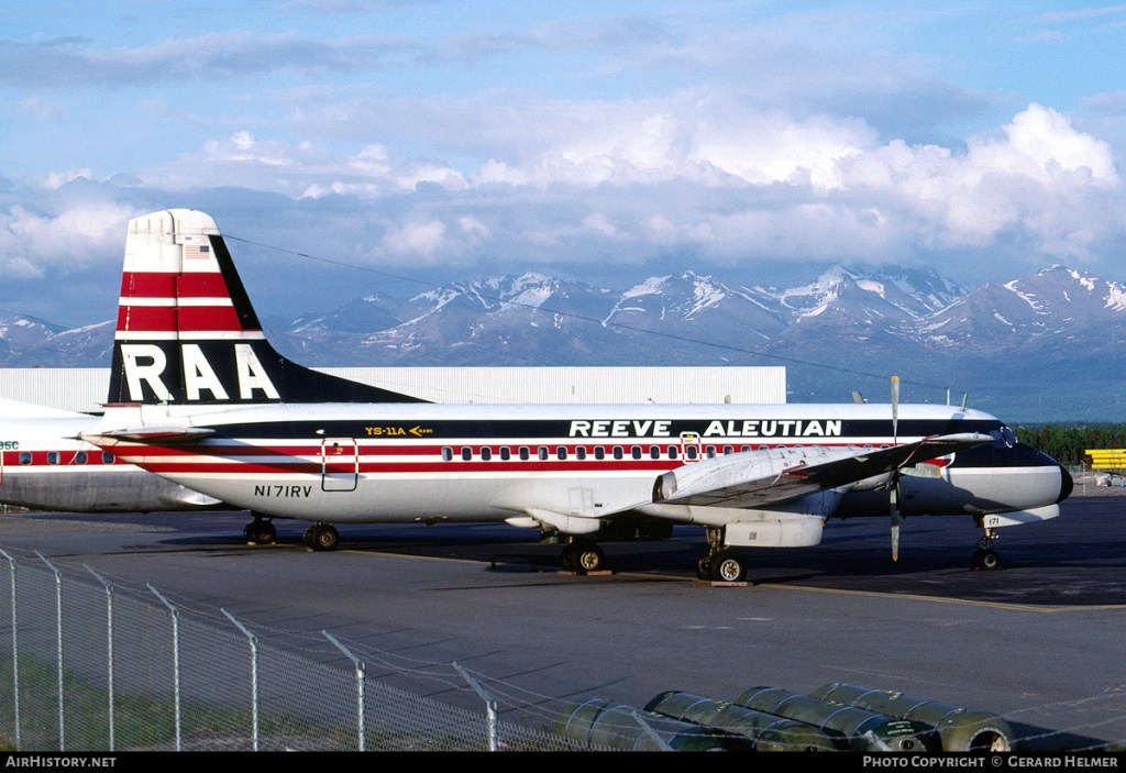 Reeve Aleutian Airways NAMC YS-11 Reeve Aleutian Airways NAMC YS-11, N171RV, is shown at Anchorage in June 1989. (Photo credit: Gerard Helmer) Share this: Click to share on X (Opens in new window) X Click to share on Facebook (Opens in new window) Facebook Like Loading...
