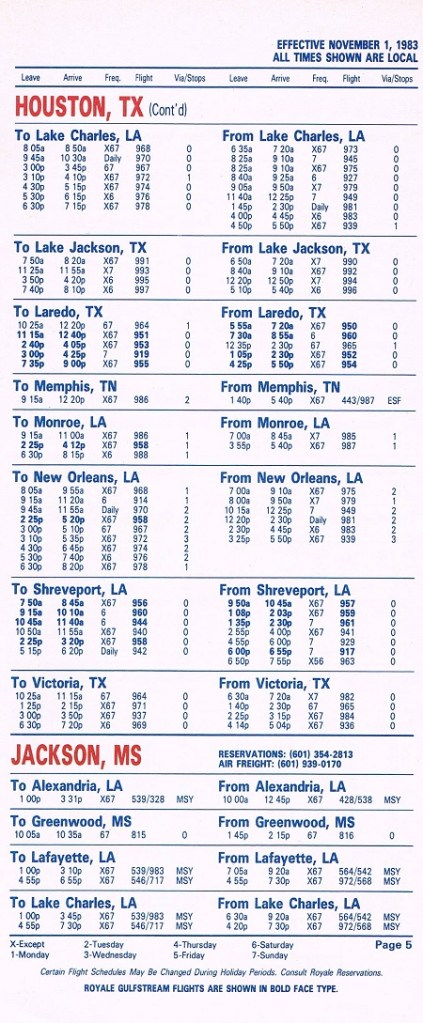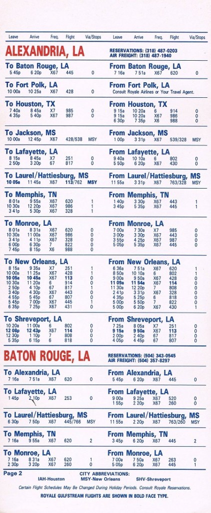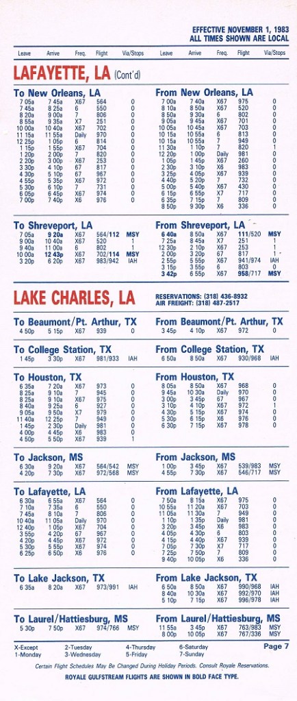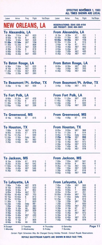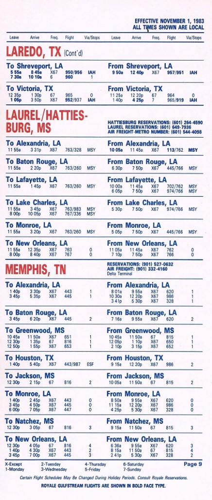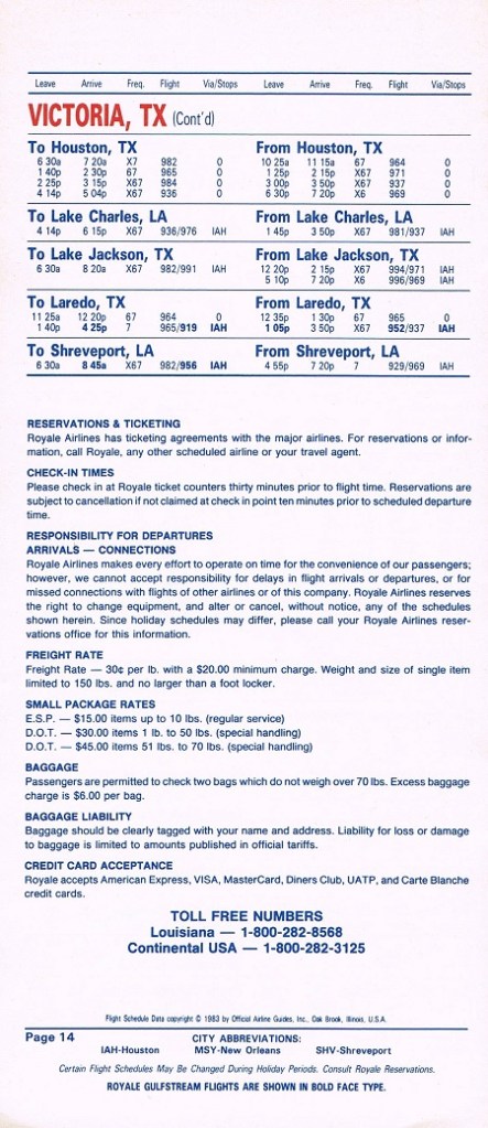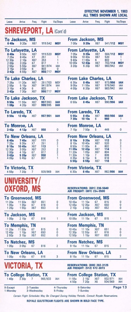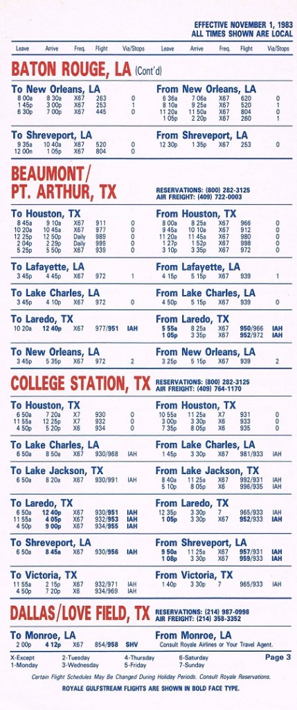 Royale Airlines November 1, 1983 System Timetable PREVIOUS PAGE MAIN PAGE Share this: Click to share on X (Opens in new window) X Click to share on Facebook (Opens in new window) Facebook Like Loading...