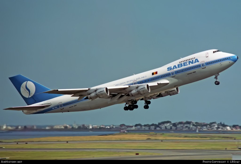 Sabena Boeing 747-100 Sabena Boeing 747-129M, OO-SGA, is shown departing Boston on September 16, 1990. (Photo credit: LRS747) Share this: Click to share on X (Opens in new window) X Click to share on Facebook (Opens in new window) Facebook Like Loading...