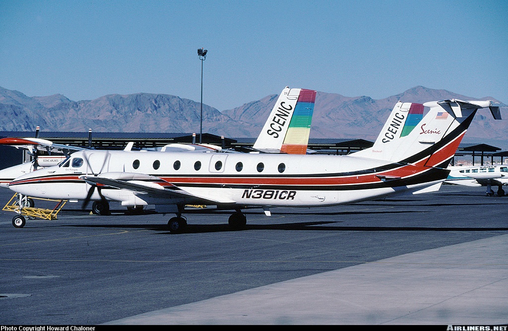 Scenic Airlines Beech 1900C, N381CR, is shown at Las Vegas North Air Terminal on March 2, 2003.