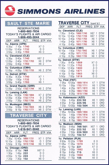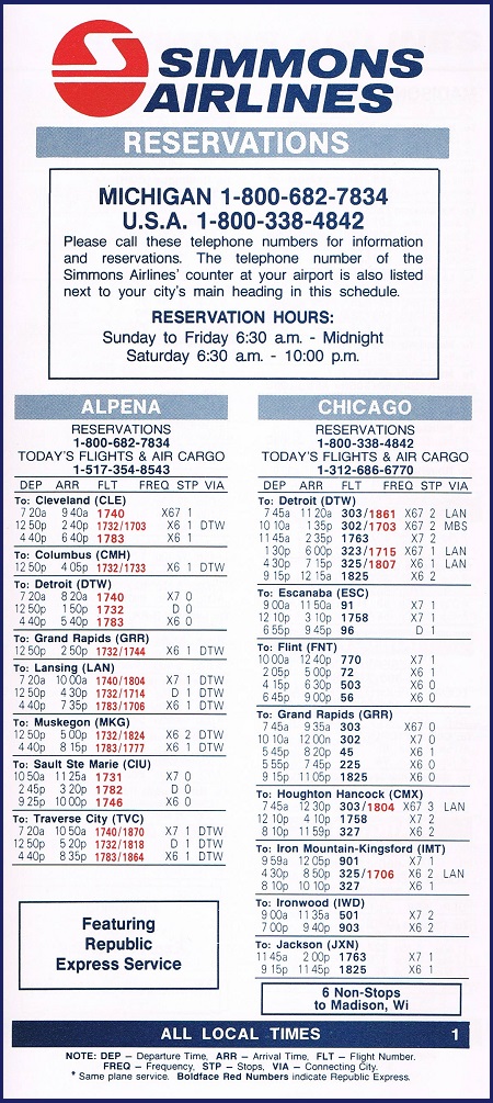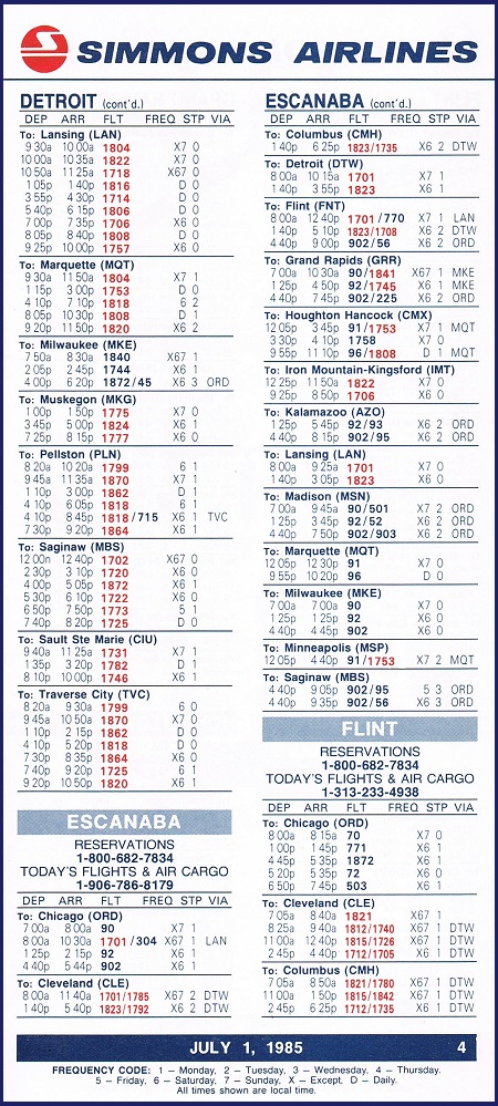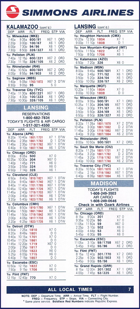 Simmons Airlines July 1, 1985 System Timetable PREVIOUS PAGE MAIN PAGE Share this: Click to share on X (Opens in new window) X Click to share on Facebook (Opens in new window) Facebook Like Loading...