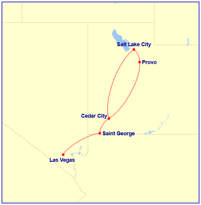 SkyWest Airlines April 15, 1974 Map generated by the Great Circle Mapper – copyright © Karl L. Swartz. PREVIOUS PAGE MAIN PAGE Share this: Click to share on X (Opens in new window) X Click to share on Facebook (Opens in new window) Facebook Like Loading...