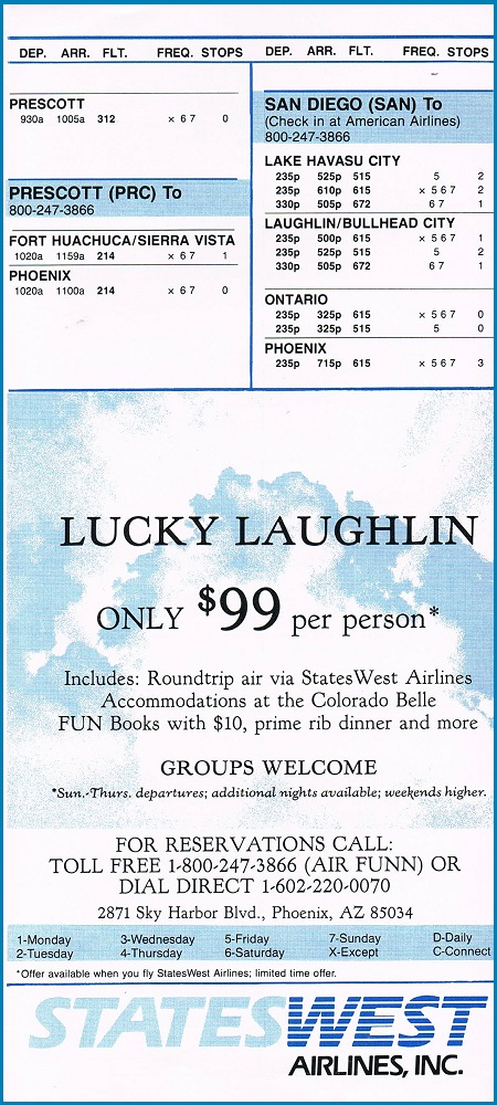 StatesWest Airlines September 12, 1988 System Timetable PREVIOUS PAGE MAIN PAGE Share this: Click to share on X (Opens in new window) X Click to share on Facebook (Opens in new window) Facebook Like Loading...