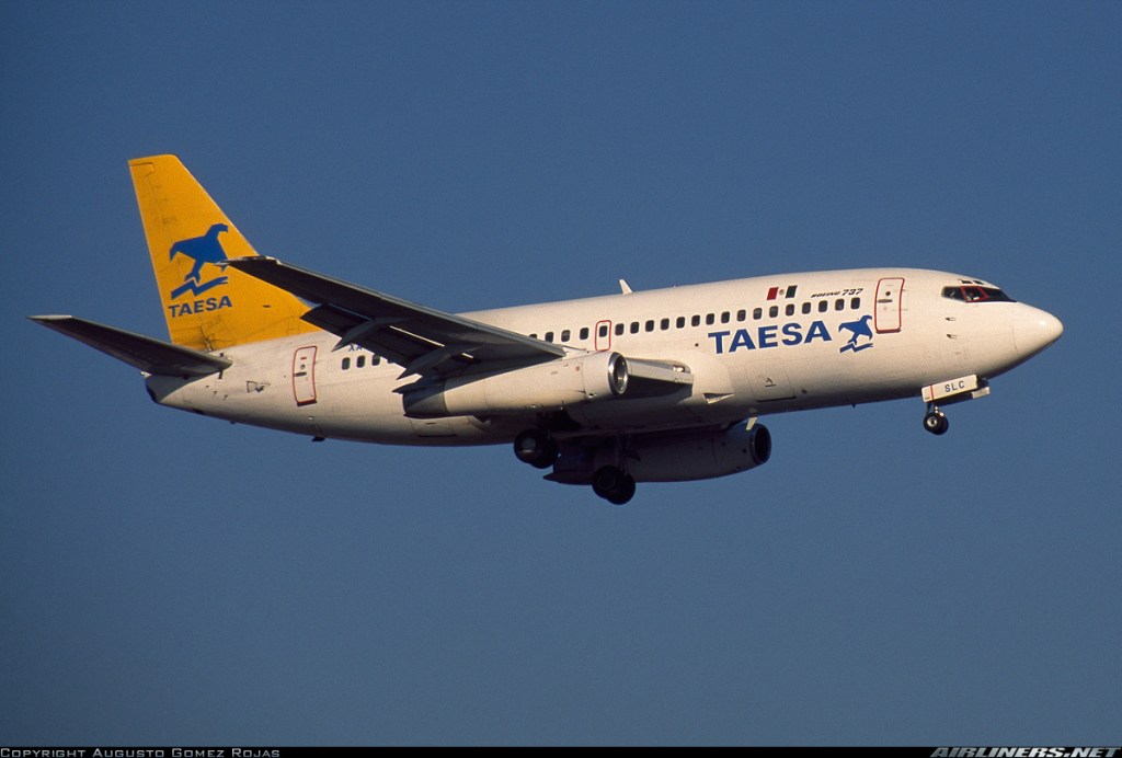 TAESA Boeing 737-2T4, XA-SLC, is shown arriving at Mexico City in January 1994.