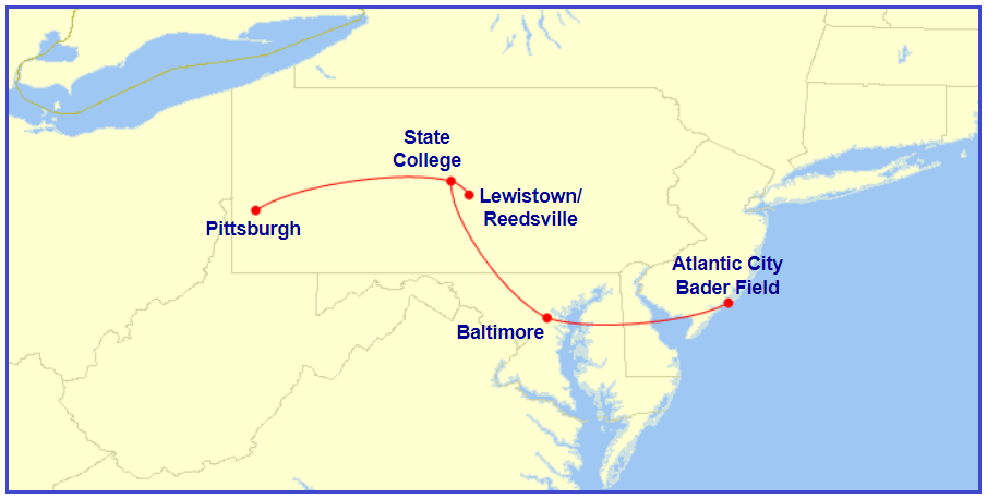 Trans Penn Airlines October 1, 1978 Map generated by the Great Circle Mapper – copyright © Karl L. Swartz. PREVIOUS PAGE MAIN PAGE Share this: Click to share on X (Opens in new window) X Click to share on Facebook (Opens in new window) Facebook Like Loading...