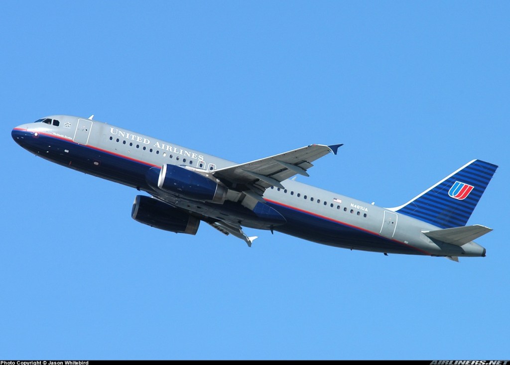 United Airlines Airbus A320-232, N461UA, is shown departing Los Angeles on November 14, 2004 wearing the carrier’s 1993-introduced livery.
