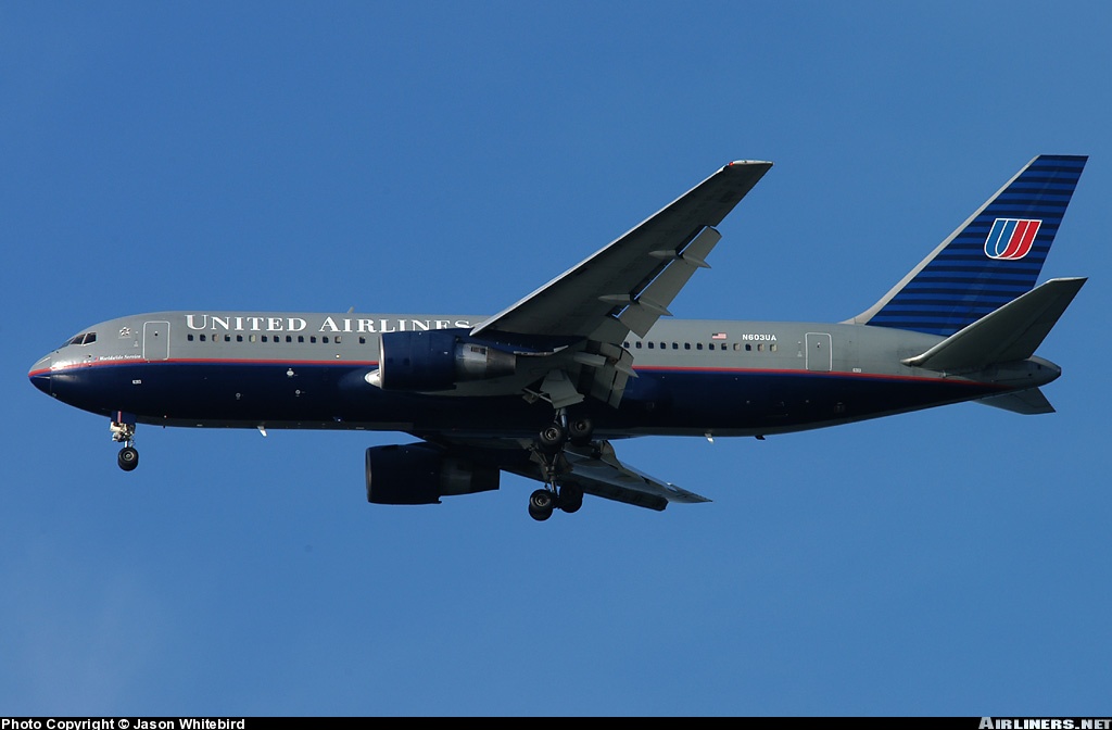 United Airlines Boeing 767-222, N603UA, is shown wearing the company’s 1993-introduced livery at San Francisco on March 20, 2004.
