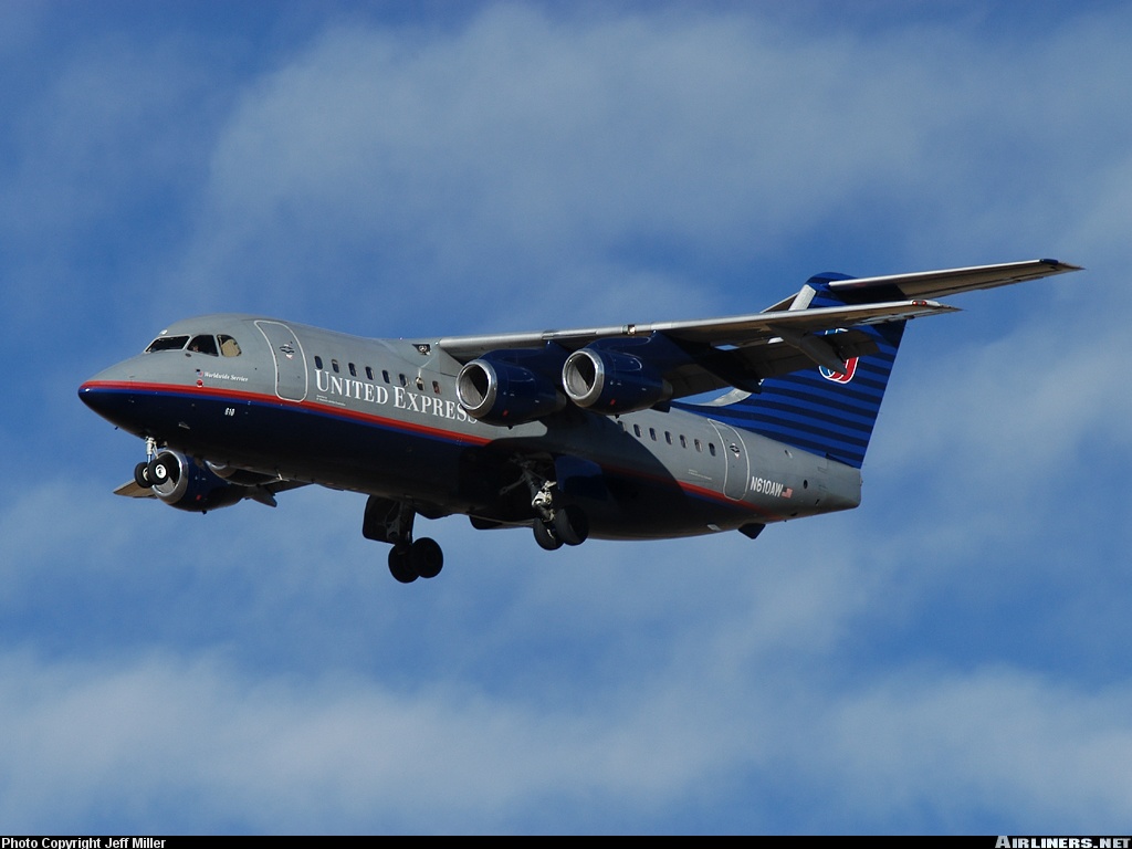 Air Wisconsin British Aerospace BAe-146-200A, N610AW, is shown wearing the United Express 1993-inroduced livery at Denver on January 3, 2003.