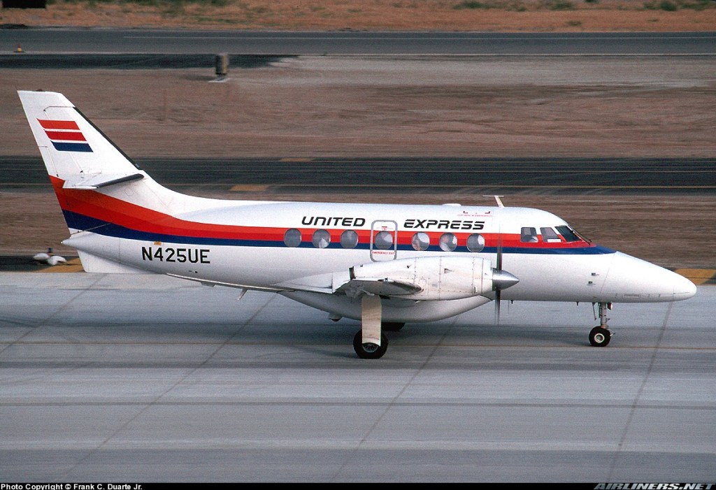 Westair Commuter Airlines British Aerospace BAe-3101 Jetstream 31, N425UE, is shown in United Express colors at Orange County in August 1990.