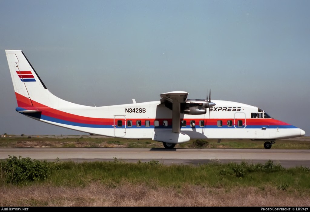 Westair Commuter Airlines Shorts 360-100, N342SB, is shown wearing United Express colors at San Francisco on July 8, 1988.