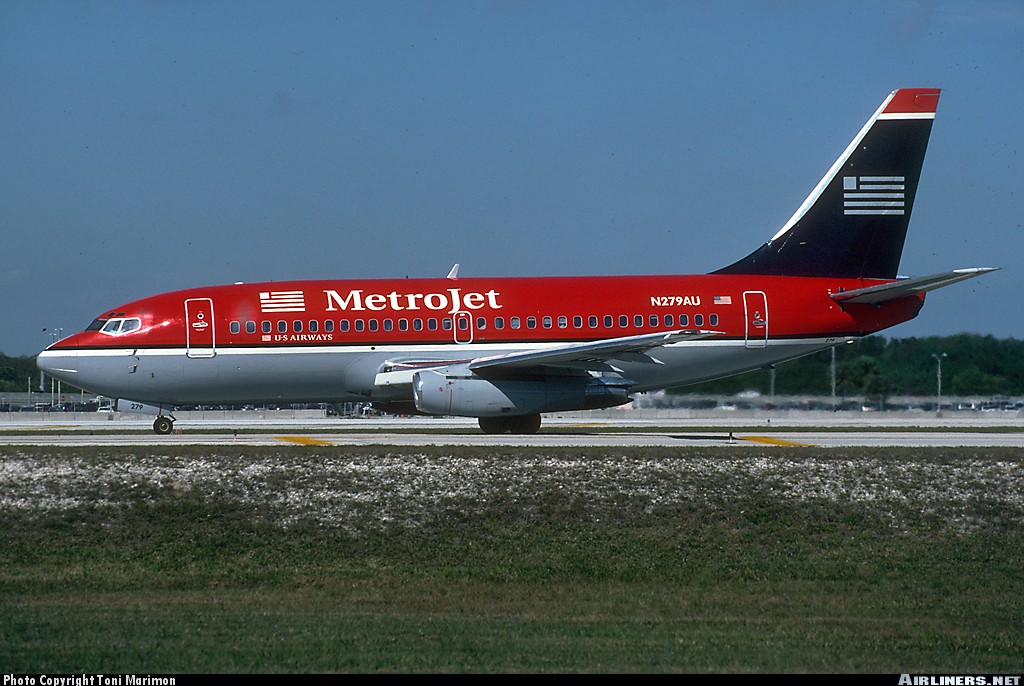 US Airways MetroJet Boeing 737-200 US Airways MetroJet Boeing 737-2B7, N279AU, is shown at Miami on February 4, 1999.(Photo credit: Toni Marimon) Share this: Click to share on X (Opens in new window) X Click to share on Facebook (Opens in new window) Facebook Like Loading...