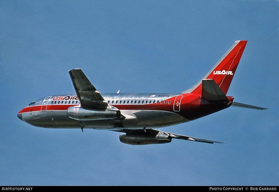 USAir Boeing 737-2B7, N278AU, is shown arriving at Miami in February 1994 wearing the carrier’s 1989-introduced livery.
