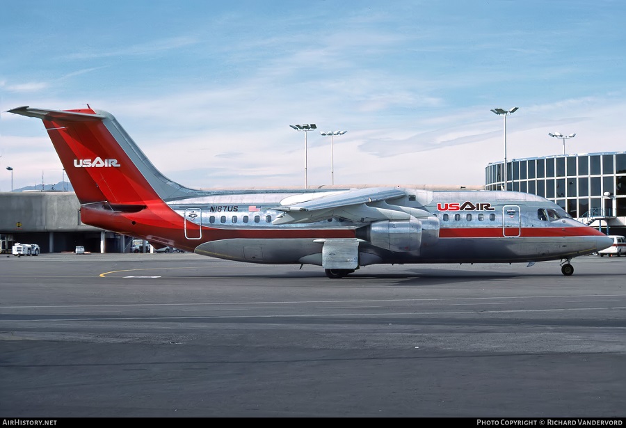 USAir British Aerospace BAe-146 USAir British Aerospace BAe-146-200A, N187US, is shown at Las Vegas on November 6, 1988. (Photo credit: Richard Vandervord) Share this: Click to share on X (Opens in new window) X Click to share on Facebook (Opens in new window) Facebook Like Loading...