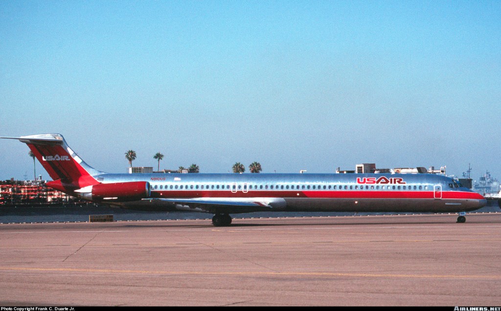 USAir McDonnell Douglas MD-81, N810US, is shown at San Diego in September 1989.