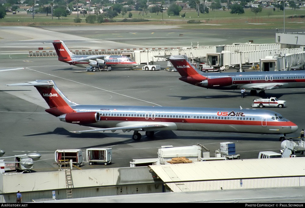 USAir McDonnell Douglas MD-81, N826US, is shown at Los Angeles on April 9, 1989.