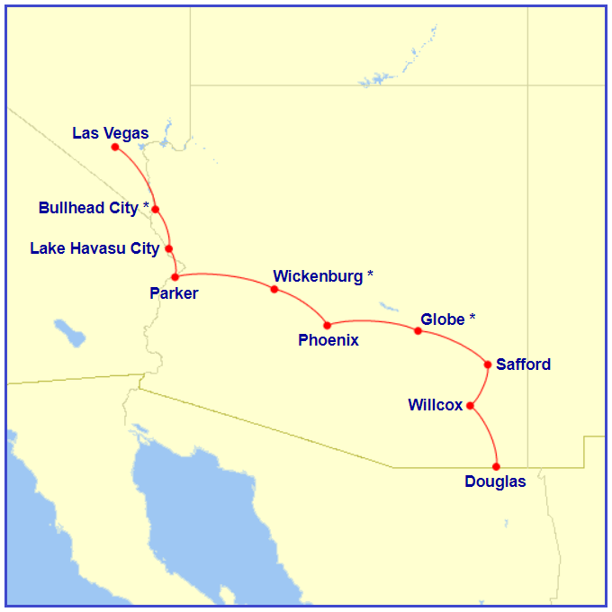 Bullhead City, Globe and Wickenburg are flag stops that require advance reservations.
