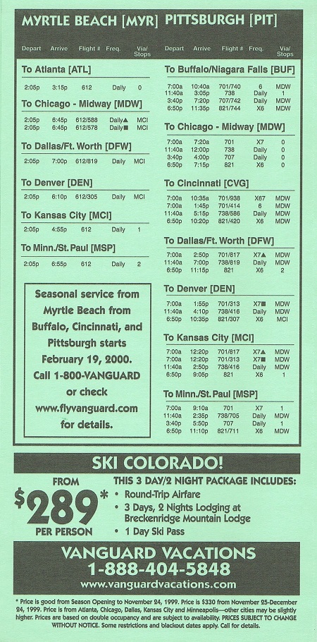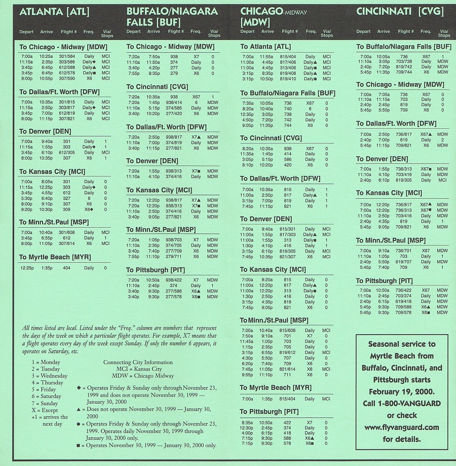 Vanguard Airlines November 1, 1999 System Timetable PREVIOUS PAGE MAIN PAGE Share this: Share on X (Opens in new window) X Share on Facebook (Opens in new window) Facebook Like Loading...
