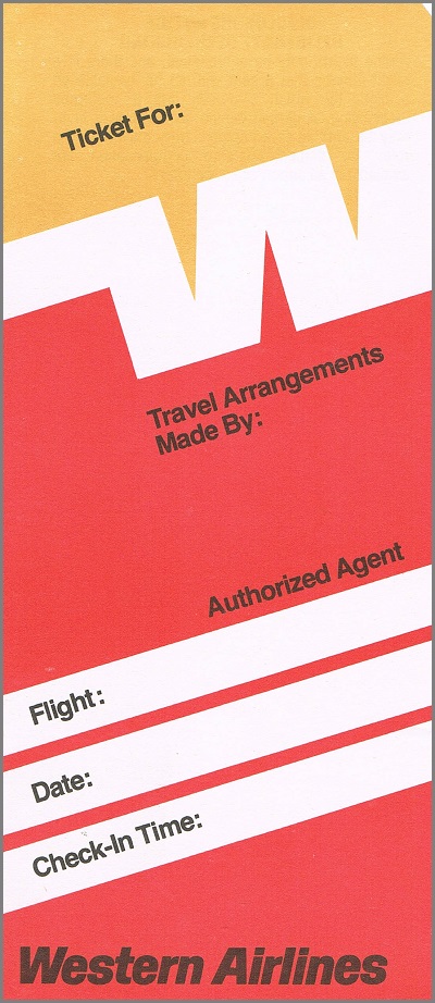 Western Airlines Ticket Jackets 1977 March 1979 October 1983 << VIRGIN ATLANTIC AIRWAYS WESTERN PACIFIC AIRLINES >> TICKET JACKETS MAIN PAGE MAIN PAGE Share this: Click to share on X (Opens in new window) X Click to share on Facebook (Opens in new window) Facebook Like Loading...